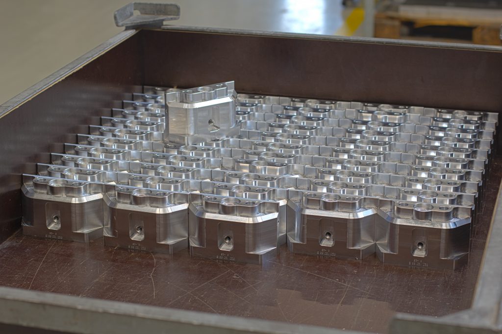 Auf den Fanuc-Zentren werden vor allem Bauteile für Werkzeugwechsler der Schubert-Verpackungsmaschinen gefertigt. Diese Werkzeuge halten beispielsweise Schachteln, in die ein Roboter dann Pralinen einlegt. Wird eine andere Packungsgröße oder -form benötigt, kann das Werkzeug gewechselt und die Verpackungslinie automatisch umgerüstet werden. In diesen Werkzeugwechslern arbeiten mehrere parallel angeordnete Pneumatikkolben mit H7-Passung. Die Bohrungen, in denen die Kolben laufen, müssen sehr genau parallel und im passenden Durchmesser gefertigt werden. Hier ist es notwendig, jedes produzierte Teil zu messen, um später einen zuverlässigen Lauf zu gewährleisten. Denn ein Stopp in einer Verpackungsmaschine kann extrem teuer werden, beispielsweise in der genannten Pralinenfertigung – wenn die Verpackungslinie steht, muss auch die Produktion der Süßigkeit abgeschaltet werden, die flüssige Schokolade und andere Zutaten werden fest und verderben. „Bei uns ist die Vormontage getaktet – das bedeutet, dass wir sehr kurzfristig liefern müssen“, ergänzt Jens Grieser. „Ein Problem auf der Maschine betrifft nicht nur uns, sondern auch die Abläufe im Mutterhaus.“ Deshalb wurde im Rahmen des Betatests vor der Anschaffung von FormControl X die Genauigkeit der Messung in der Maschine laufend überprüft; die Abweichungen lagen im Bereich weniger Tausendstel Millimeter.