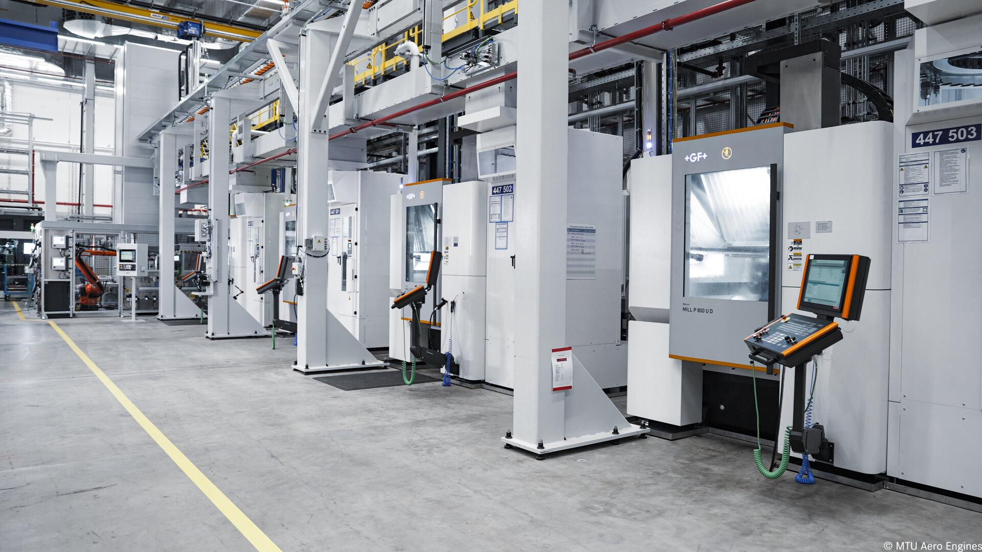 Das neue MTU-Fertigungssystem wird in zwei Ausbaustufen mit final acht Dreh- und sieben Fräszentren samt vollautomatisiertem Bauteil- und Werkzeugrüsten ausgestattet. In der derzeitigen ersten Stufe ist nur die Hälfte der Kapazität vorhanden. Die zweite soll langfris-tig bis zum Jahr 2036 realisiert werden.
